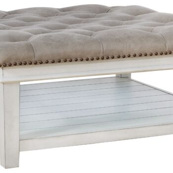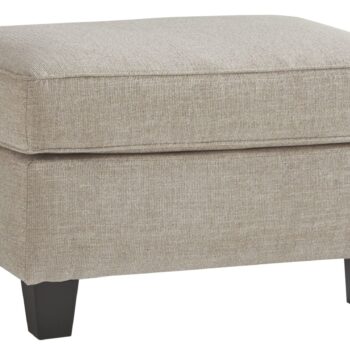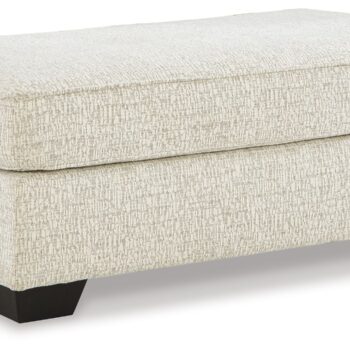 This ottoman adds a richly neutral aspect to your living space. This versatile companion piece offers ample storage space plus a tabletop with cup holders on the reverse side of the removable cushion.