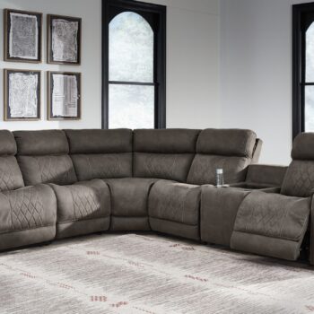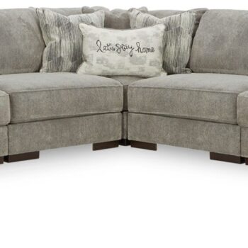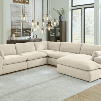 - Includes 10 pieces: left-arm facing corner chaise, 6 armless chairs, 2 wedges and right-arm facing corner chair