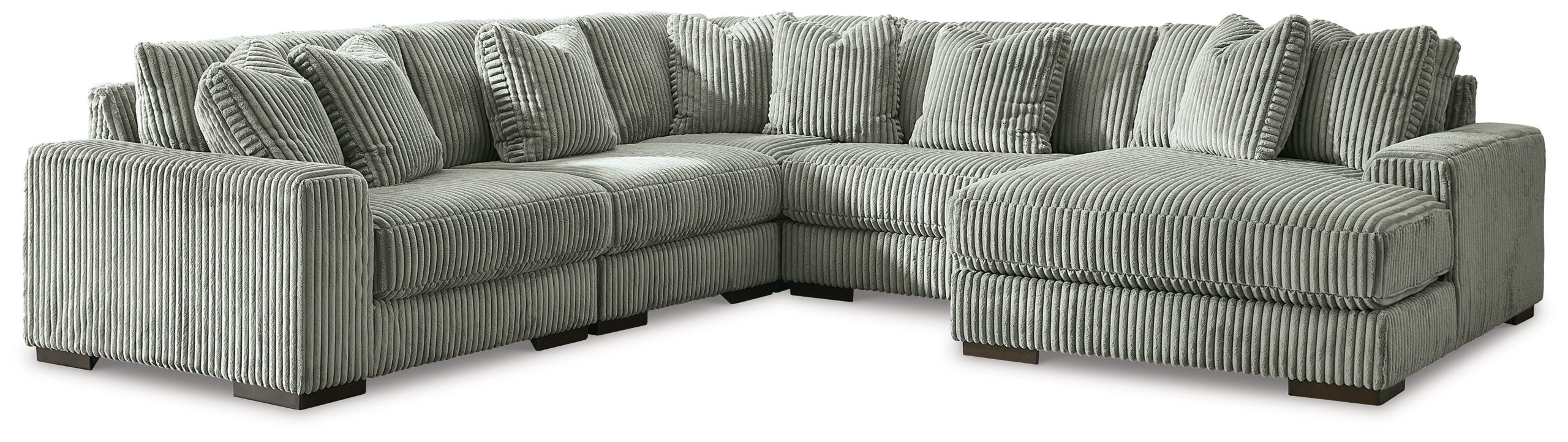 Plush and posh. Showcase your eye for on-trend texture with the statement-making cord upholstery of this sectional with chaise. Its stunningly soft fabric entices in a warm neutral hue, complementing contemporary color palettes. Sink into the cushions and plan to stay a while this cozy living room centerpiece highlights your high-end approach to comfort and style.