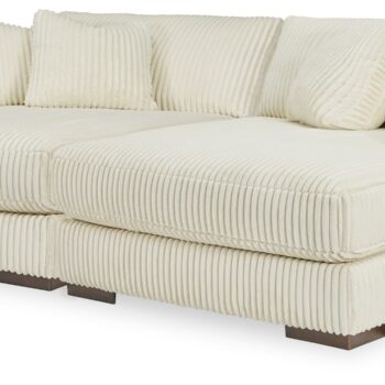 Plush and posh. Showcase your eye for on-trend texture with the statement-making cord upholstery of this sectional with chaise. Its stunningly soft fabric entices in an ivory hue, complementing contemporary color palettes. Sink into the cushions and plan to stay a while this cozy living room centerpiece highlights your high-end approach to comfort and style.