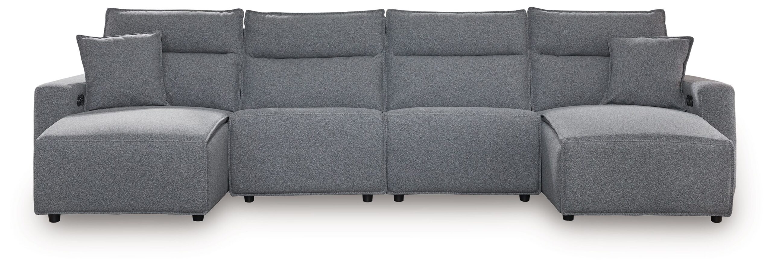 - Includes 4 modular pieces: Left-arm facing power reclining back chaise, 2 armless chairs and right-arm facing power reclining back chaise