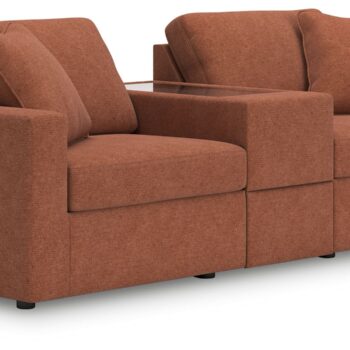 - Includes 3 modular pieces: left-arm facing corner chair, audio console with storage and right-arm facing corner chair