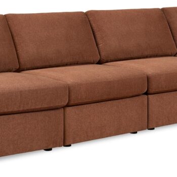 - Includes 4 modular pieces: left-arm facing corner chaise, armless chair, console with storage and right-arm facing corner chair