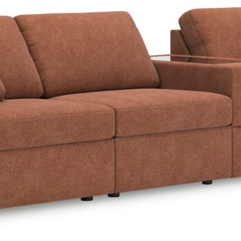- Includes 8 modular pieces: left-arm facing corner chair, audio console with storage, console with storage, wedge, 3 armless chairs and right-arm facing corner chair