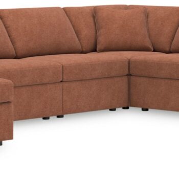 - Includes 8 modular pieces: left-arm facing corner chair, 3 armless chairs, 2 consoles with storage, wedge and right-arm facing corner chaise