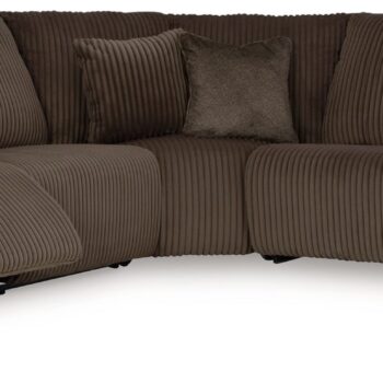 Experience unparalleled comfort with this reclining sectional with chaise. It’s a stylish and invitingly soft look made all the more appealing by cozy corduroy cushions that feel great and add a touch of texture. The rich chocolate brown upholstery effortlessly blends into your decor, making it a gorgeous addition to your home. So sit back and unwind in this spacious set, perfect for gatherings with friends and family.