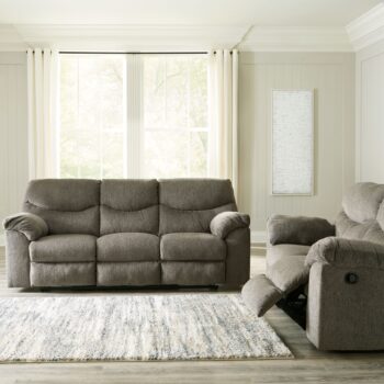 Double down on sleek style with this power reclining sofa and loveseat. It has a streamlined, space-conscious appeal, with two-tone upholstery in neutral hues creating subtly striking visual intrigue. And with one-touch reclining, adjustable headrests and wireless charging, this set combines contemporary function and fashion into a single clean-lined design.