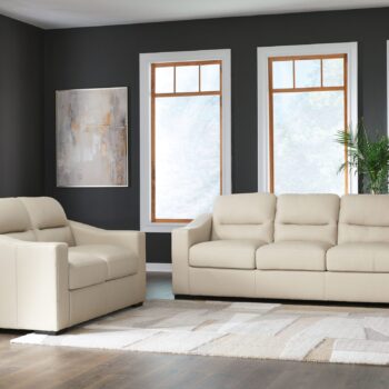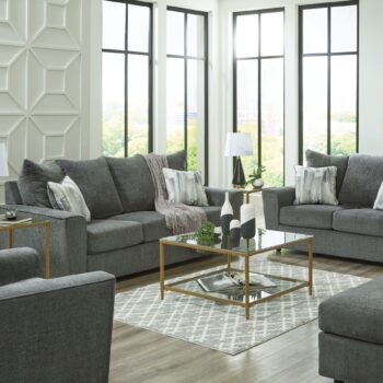 What’s new in neutrals? Shades of gray, of course. Embrace the sophisticated design trend with this gorgeous sofa and loveseat that offers a clean-lined, contemporary style at a comfortably cool price. Sure to lift your spirits, the plush chenille fabric is fabulously neutral. Contemporary flared arms give it a distinctive flair. This set also arrives with two cool brushstroke accent pillows to elevate the taste and comfort level.