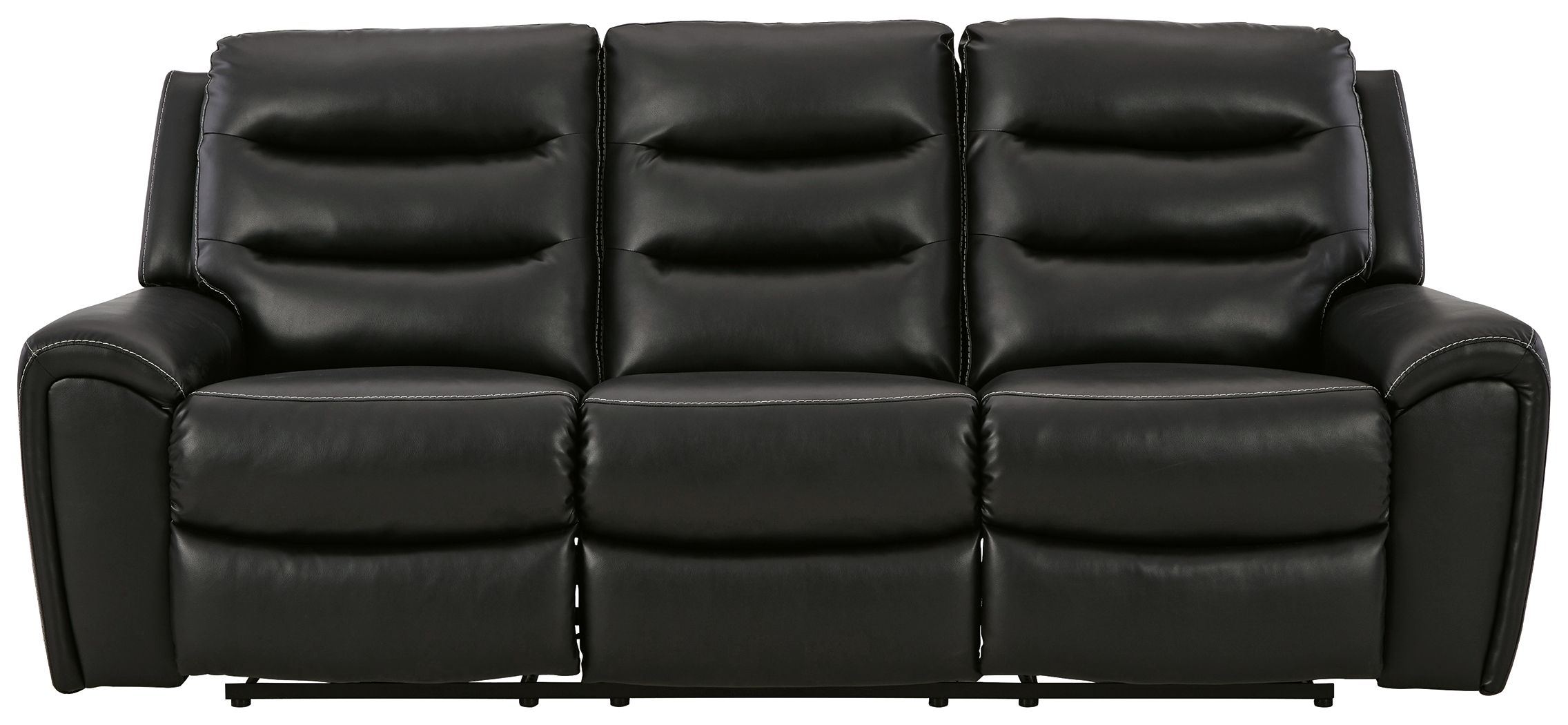With its decidedly contemporary styling, this power reclining sofa has a sleek sensibility that seamlessly elevates your living room aesthetic. Explore endless possibilities for comfort with its one-touch power control, zero-gravity reclining and adjustable headrests. A triple-tier back and chic black upholstery round out this simply stunning piece.