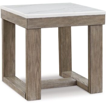 This sofa table is simple in design but big on style. Finished with a trend-right grayish brown wood tone, its bold, blocky profile and natural marble top are timeless classic choices that is ideal for pairing with an ottoman underneath to pull extra seating into the room or remaining clean and sleek on its own. Adding to its beauty, the marble top’s color variations, fissures, mineral deposits and veining are naturally formed and are not defects.