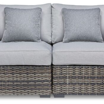 This cool, casual outdoor chair will raise the comfort level and visual appeal of your outdoor living space. Made of handwoven wicker in neutral tones of light and dark gray, the armless chair blends beautifully into your lanai or pool and patio area with thick, comfy cushions wrapped in Nuvella® high performance fabric that is stain resistant, fade resistant and easy to clean. This cushioned armless chair can be used on its own or paired with other pieces of the matching sectional to create a space that holds up to Mother Nature and ages gracefully for years of enjoyment.