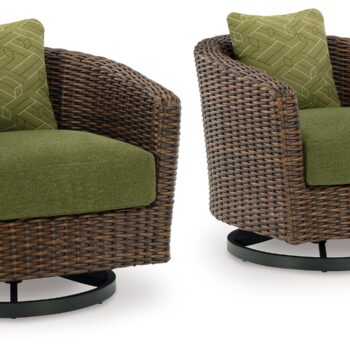 Elevate the appeal of easy-breezy living with this outdoor swivel dining chair. Made to look like wood yet durable enough to weather the elements, it’s sure to serve you and your besties well, year after year. The gently curved chair features cushions wrapped in Nuvella+â„¢ high-performance fabric for plush refinement. Go ahead and take a spin.