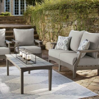 Collection features durable eucalyptus wood with an antiqued teak color paint finish. The finish is done in 5 steps: stain, sealer, glaze and 2 top-coats of paint. All with high performance Nuvella fabric. Rectangular dining table is 81″ x 42″. For the bar table set, the 42″ x 42″ table can be used to make both 3-piece and 5-piece sets. Assembly required on all skus.