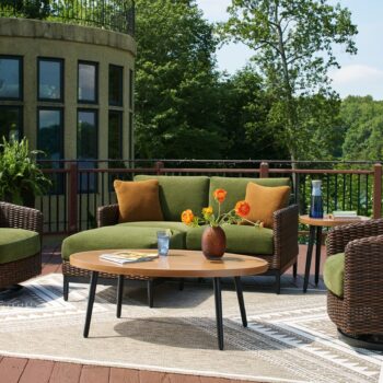 Ashley Express. High density polyethylene with textured finish. Black and driftwood color combination. Assembly required.