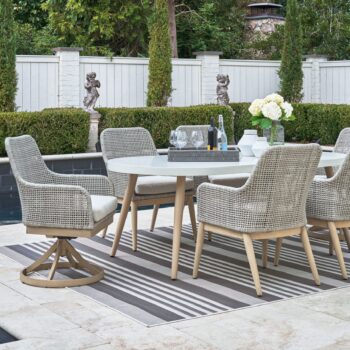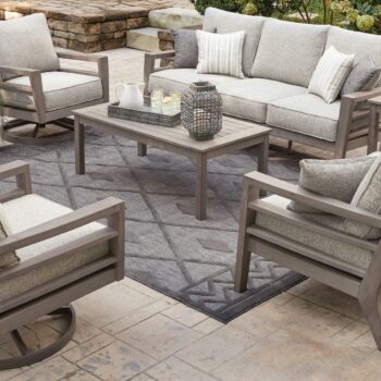 Ashley Furniture Oasis Court – Gray – Sofa, Chairs, Table Set (Set of 4)