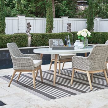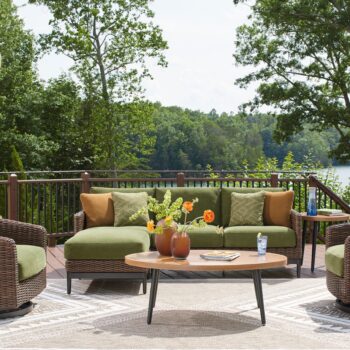 Luxurious comfort, meet outdoor living. This furniture set brings superior seating areas alfresco, taking cues from contemporary interiors with its versatile neutral hues and ample cushioning. Soak up the sun on summer days or cozy up with cocoa on winter nights this set’s durable design allows you to enjoy chic seating through all seasons.