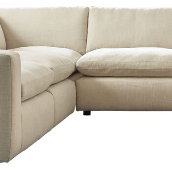 - Includes 4 pieces: left-arm facing loveseat with cushion, armless chair with cushion, curved corner chair with cushion and right-arm facing loveseat with cushion