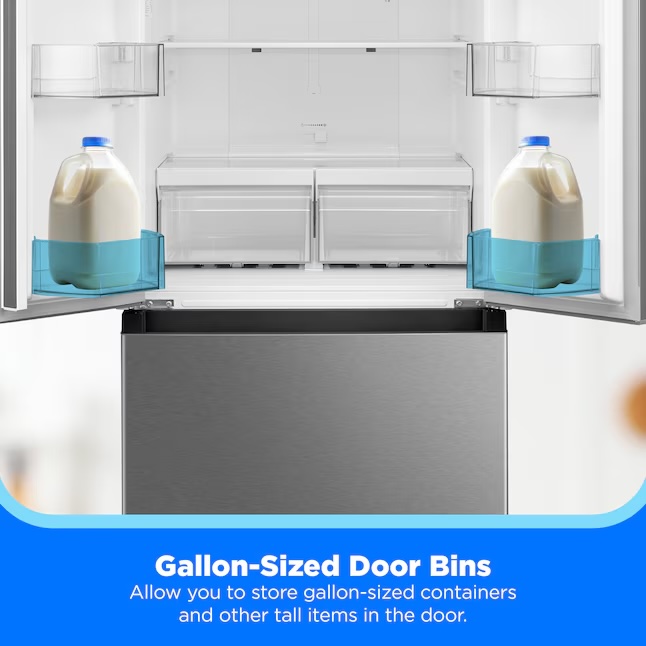 - Gallon-Sized Door Bins: Allow you to store gallon-sized containers and other tall items in the door instead of using shelf space.